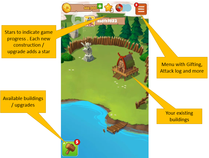 There are two main screens. First, the slot machine. This is used to earn gold (soft currency) and raid other villages for even more gold