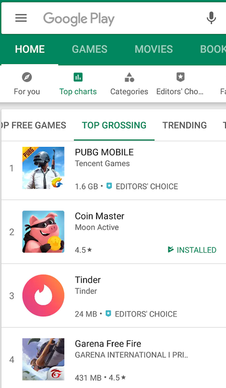Coin Master has been downloaded over 10 million times on Google Play alone. It's currently #3 on the top grossing charts in India. The game drives more IAP revenue (In-app purchases) than any other app except PUBG and Tinder! While India is the biggest market (by users) for the game, it is minting money worldwide. Coin Master is making $11m per month globally according to Sensor Tower.